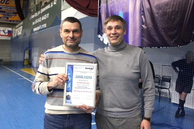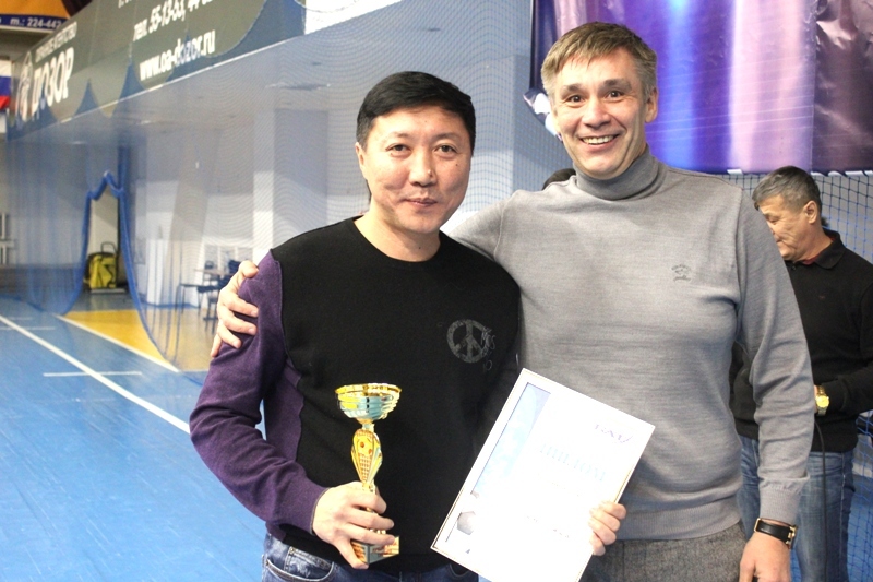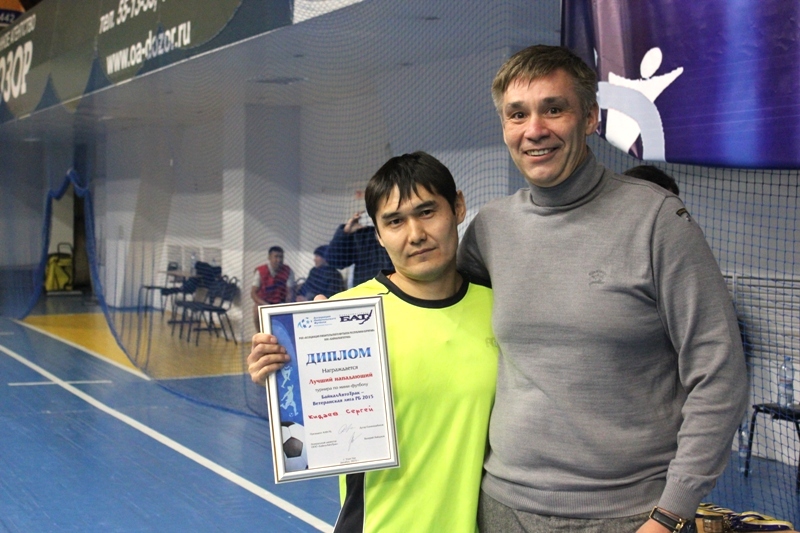 Лучшим игрокам турнира грамоты вручает генеральный партнер Ассоциации любительского футбола РБ, генеральный директор компании "БайкалАвтоТрак" Валерий Хайдуков.